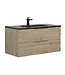 Badkamermeubel Cairo 100cm inclusief onderkast en zwarte wastafel. De onderkast is voorgemonteerd en uitgevoerd met twee lades met soft close sluiting. Inclusief afvoerplug voor de wastafel. De wastafelkraan en het sifon zijn niet inbegrepen. Het is mogelijk om de afvoer via de grond aan te sluiten. Aan de achterkant van de onderkast is aan de onderkant een uitsparing gemaakt van circa 6cm diep, over de gehele breedte. Dit is vanaf de zijkant niet zichtbaar, alleen vanaf de onderkant van de kast. De wastafel is gemaakt van kunstmarmer.
