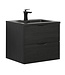 Badkamermeubel Cairo 60cm inclusief onderkast en zwarte wastafel. De onderkast is voorgemonteerd en uitgevoerd met twee lades met soft close sluiting. Inclusief afvoerplug voor de wastafel. De wastafelkraan en het sifon zijn niet inbegrepen. Het is mogelijk om de afvoer via de grond aan te sluiten. Aan de achterkant van de onderkast is aan de onderkant een uitsparing gemaakt van circa 6cm diep, over de gehele breedte. Dit is vanaf de zijkant niet zichtbaar, alleen vanaf de onderkant van de kast. De wastafel is gemaakt van kunstmarmer.