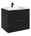 Badkamermeubel Delta is een set bestaande uit onderkast en wastafel. De onderkast heeft twee lades en is uitgevoerd in het zwart. Dit badkamermeubel wordt geleverd met al het montagemateriaal en is eenvoudig te monteren.