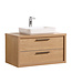 Badkamermeubel Indiana inclusief onderkast en waskom. De onderkast is uitgevoerd met twee lades uitgevoerd met soft close sluiting. Achter de waskom zit het gat voor de kraan, ook is in het blad een uitsparing gemaakt voor de afvoer.