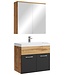 Badkamermeubel Montreal inclusief onderkast, wastafel en spiegelkast. Het meubel is uitgevoerd in eiken met mat zwart. De Montreal moet nog gemonteerd worden, alle montagematerialen en ophangmaterialen zijn hiervoor inbegrepen. Vanwege het formaat van de wastafel wordt aangeraden om een standaard afmeting wastafelkraan te gebruiken. Er wordt geen wastafelkraan, afvoerplug of sifon meegeleverd. Een overloopset is wel inbegrepen.
