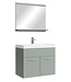 Badkamermeubel Montreal inclusief onderkast met wastafel en spiegel met planchet. De set is uitgevoerd in mat groen. De Montreal moet zelf gemonteerd worden, alle montagematerialen en ophangmaterialen zijn inbegrepen. Vanwege het formaat van de wastafel wordt aangeraden om een standaard afmeting wastafelkraan te gebruiken. Er wordt geen wastafelkraan, afvoerplug of sifon meegeleverd. Een overloopset is wel bij de wastafel inbegrepen.