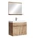 Badkamermeubel Montreal inclusief onderkast met wastafel en spiegel met planchet. De set is uitgevoerd in kastanje eiken kleur. De Montreal moet zelf gemonteerd worden, alle montagematerialen en ophangmaterialen zijn inbegrepen. Vanwege het formaat van de wastafel wordt aangeraden om een standaard afmeting wastafelkraan te gebruiken. Er wordt geen wastafelkraan, afvoerplug of sifon meegeleverd. Een overloopset is wel bij de wastafel inbegrepen.