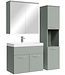 Badkamermeubel Montreal inclusief onderkast, witte wastafel, spiegelkast en zijkast. De set is uitgevoerd in mat groen. De deuren van de zijkast zijn linksdraaiend of rechtsdraaiend te monteren. De Montreal moet nog gemonteerd worden, alle montagematerialen en ophangmaterialen zijn hiervoor inbegrepen. Vanwege het formaat van de wastafel wordt aangeraden om een standaard afmeting kraan te gebruiken. Er wordt geen wastafelkraan, afvoerplug of sifon meegeleverd. Een overloopset is wel bij het meubel inbegrepen.