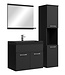 Badkamermeubel Montreal inclusief onderkast, zwarte wastafel, spiegel en zijkast. De set is uitgevoerd in mat zwart. De deuren van de zijkast zijn linksdraaiend of rechtsdraaiend te monteren. De Montreal moet nog gemonteerd worden, alle montagematerialen en ophangmaterialen zijn hiervoor inbegrepen. Vanwege het formaat van de wastafel wordt aangeraden om een standaard afmeting kraan te gebruiken. Er wordt geen wastafelkraan, afvoerplug of sifon meegeleverd. Een overloopset is wel bij het meubel inbegrepen.