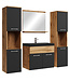Badkamermeubel Montreal inclusief onderkast, zwarte wastafel, spiegel en twee zijkasten. De set is uitgevoerd in eiken met mat zwart. De deuren van de zijkasten zijn linksdraaiend of rechtsdraaiend te monteren. De Montreal moet zelf gemonteerd worden, alle montagematerialen en ophangmaterialen zijn inbegrepen. Vanwege het formaat van de wastafel wordt aangeraden om een standaard afmeting wastafelkraan te gebruiken. Er wordt geen wastafelkraan, afvoerplug of sifon meegeleverd.