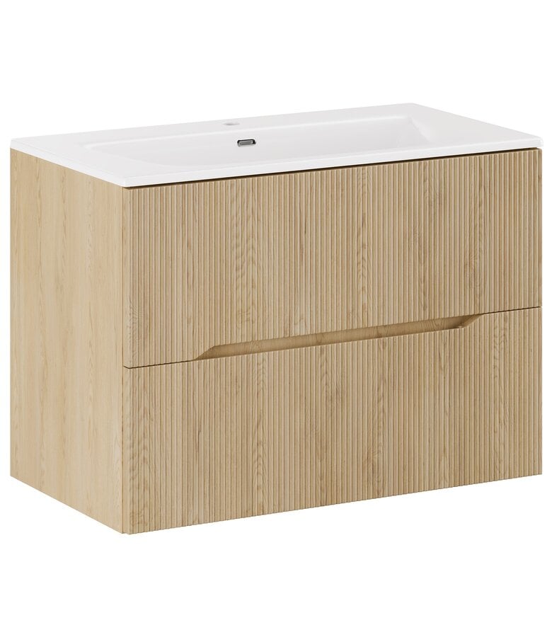 Badkamermeubel Nordic 80cm inclusief onderkast en wastafel. De onderkast is eenvoudig te monteren en uitgevoerd met twee lades.