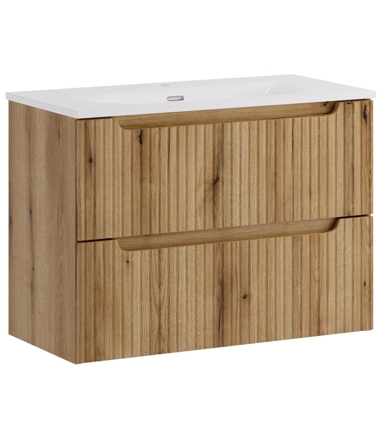 Badkamermeubel Nova 80cm inclusief onderkast en wastafel. De onderkast is eenvoudig te monteren en uitgevoerd met twee lades.