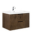 Badkamermeubel Thermis inclusief onderkast en wastafel. De onderkast heeft twee lades met soft close sluiting en is uitgevoerd in rose wood. De fronts van de lades zijn afgewerkt met een ribbelstructuur. Inclusief chrome afvoerplug voor de wastafel. De wastafelkraan en het sifon zijn niet inbegrepen.