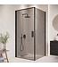 Douchecabine Alava uitgevoerd met een draaideur en een vaste wand. De douchecabine is gemaakt van 6mm veiligheidsglas met zwarte profielen en uitgevoerd in getint glas (rookglas). De draaideur kan aan de linkerkant of aan de rechterkant geplaatst worden. Het uiteinde van de deur is uitgevoerd met een rubberen magneetstrip zodat deze altijd waterdicht sluit. Wordt inclusief montage materiaal en handleiding geleverd. Afgewerkt met een antikalk behandeling en kan zonder douchebak direct op de tegels geplaatst worden.