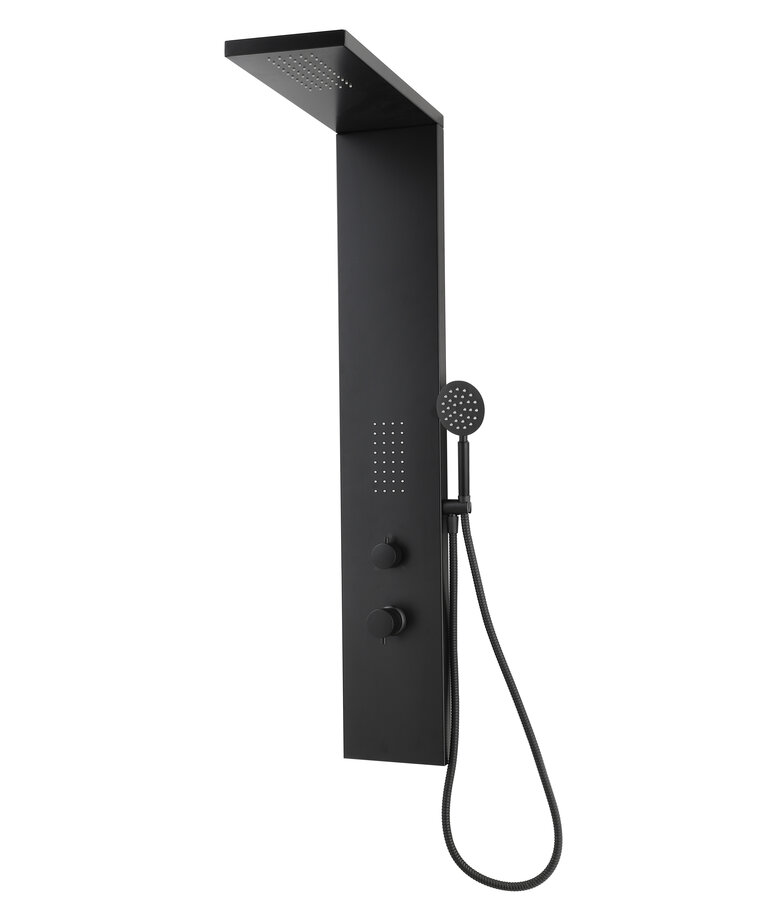 Douchepaneel Savara is een douchepaneel gemaakt van aluminium. Het douchepaneel heeft één massage unit, een hoofddouche en een handdouche. Verder heeft het douchepaneel twee draaiknoppen. Met de ene draaiknoop kunnen de drie douchestanden worden geregeld. Dit betekent dat maximaal twee verschillende standen tegelijk kunnen worden. De andere draaiknop op het douchepaneel wordt gebruikt voor het regelen van de temperatuur door middel van een mengkraan.
