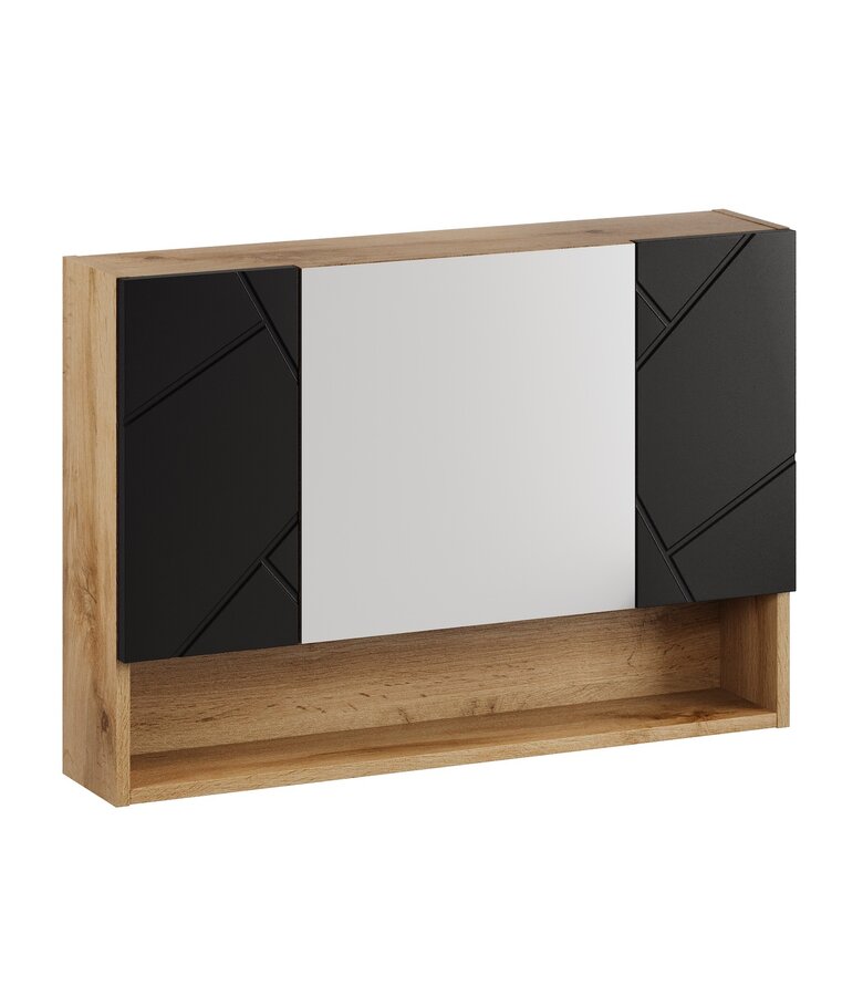 Spiegelkast Manello 80 x 17 x 55 cm - eiken met mat zwart