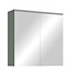 Spiegelkast Toledo is uitgevoerd in mat groen met twee draaideuren. In de kast is een houten houder gemonteerd. Aan de bovenkant zit een glasplaat gemonteerd.