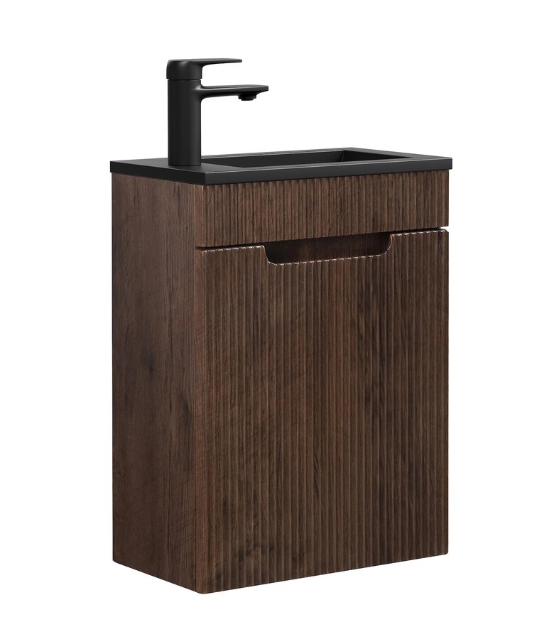 Toiletmeubel Thermis 40cm - walnoot bruin - zwarte wastafel