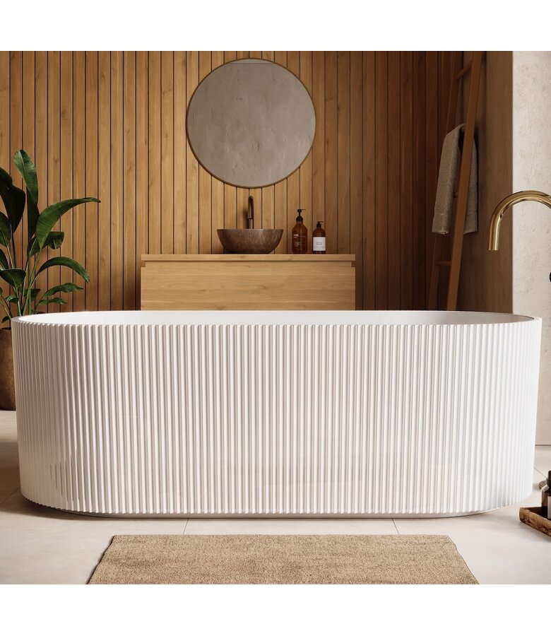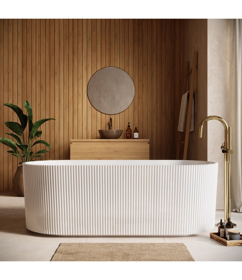 Vrijstaand ligbad Havana gemaakt van acryl met een hoogglans witte afwerking. Dit model kan vrijstaand geplaatst worden.