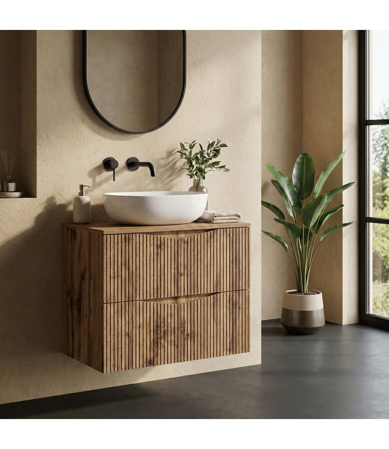 Wastafelkast Calen is een onderkast met bovenblad. De onderkast is uitgevoerd met twee lades en soft-close. Inclusief bijbehorend montagemateriaal en bevestigingsmateriaal om de kast te monteren en aan de muur op te hangen.