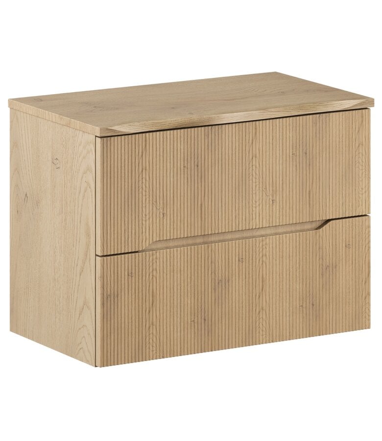 Wastafelkast Nordic met bovenblad is een hangende onderkast met een strak vormgegeven, volledig gesloten bovenblad. De onderkast is voorzien van twee ruime lades.