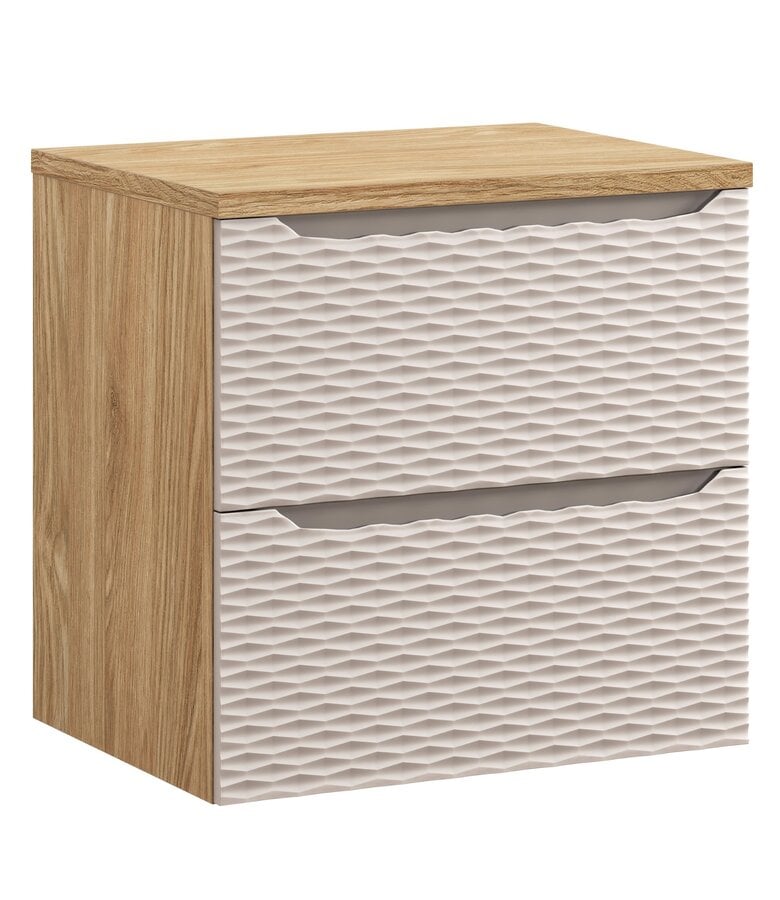 Badkamermeubel Ocean met bovenblad is een hangende onderkast met een strak vormgegeven, volledig gesloten bovenblad. De onderkast is voorzien van twee lades.