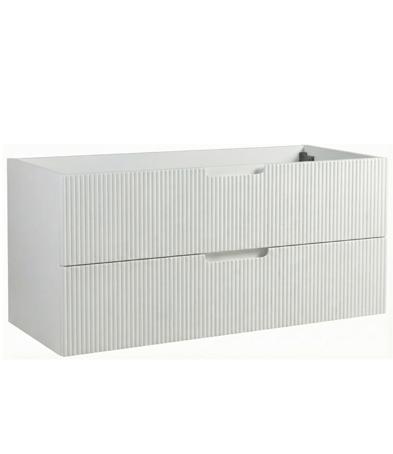 Wastafelkast Thermis is een badkamermeubel zonder wastafel. De onderkast heeft twee lades met soft close sluiting en is uitgevoerd in mat wit.