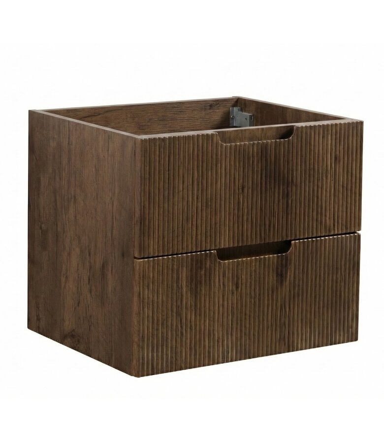 Wastafelkast Thermis is een badkamermeubel zonder wastafel. De onderkast heeft twee lades met soft close sluiting en is uitgevoerd in walnoot bruin.